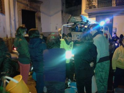 Gli operatori, coordinati da Francesco Loffredo, con un autobotte da 8000 lt. posizionato nella piazzetta di fianco la chiesa e due mezzi rispettivamente da 600 e 500 lt., per inoltrarsi nelle abitazioni più lontane ed in stradine, hanno rifornito gli abitanti di acqua ad uso igienico sanitario.