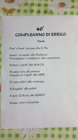Ancora non ho parole... l'ultima emozione simile risale ai tempi del militare, circa vent'anni fa!!! Momenti impossibili da dimenticare: mi ha fatto piacere vedervi impegnati e mantenere riserbo con serietà. Ringrazio TUTTI, semplici conoscenti ed ora diventati amici, veramente al limite dell'emozione. Spero, e deve essere così, che tale impegno e serietà si riporti nel nuovo gruppo che abbiamo formato e che sia una festa ogni volta che facciamo opera di volontariato... ricordo a tutti il massimo rispetto per coloro che ci stanno a fianco, dal più vecchio all'ultimo arrivato, sugli interventi come nella vita civile. Vi auguro soddisfazioni come questa che ho avuto il piacere di gustarmi: sono a disposizione con e per tutti, e se mi volete e non mi trovate... cercatemi in un sogno, io sarò li ad aspettarvi. Errico IZ8KZY