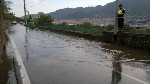 Immediato l’intervento di due squadre A.I.B., coordinate dal vice Coordinatore Felice Sorrentino, che giunte sul posto hanno spento le fiamme e bonificato tutta l’area. Nel tardo pomeriggio, invece, le condizioni metereologiche sono peggiorate e verso le 17.30 un vero e proprio nubifragio si è abbattuto sulla città di Cava de’Tirreni una pioggia torrenziale e una grandinata, hanno mandato in tilt la rete fognaria, rimanendo così allagate parecchie strade.